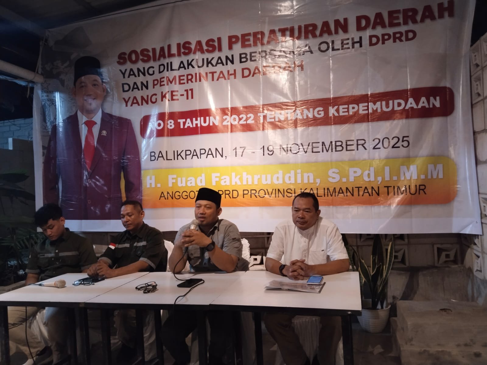 BALIKPAPAN, NusaKhatulistiwa.com — Anggota DPRD Provinsi Kalimantan Timur, H. Fuad Fakhruddin, S.Pd.I., M.M, kembali melaksanakan Sosialisasi Peraturan Daerah (Sosper) ke-11 dengan mengangkat Peraturan Daerah Provinsi Kalimantan Timur Nomor 8 Tahun 2022 tentang Kepemudaan. Kegiatan tersebut digelar pada 17–19 November 2025, berlokasi di RT 07, Kelurahan Sumber Rejo, Kecamatan Balikpapan Tengah, mulai pukul 19.30 WITA.